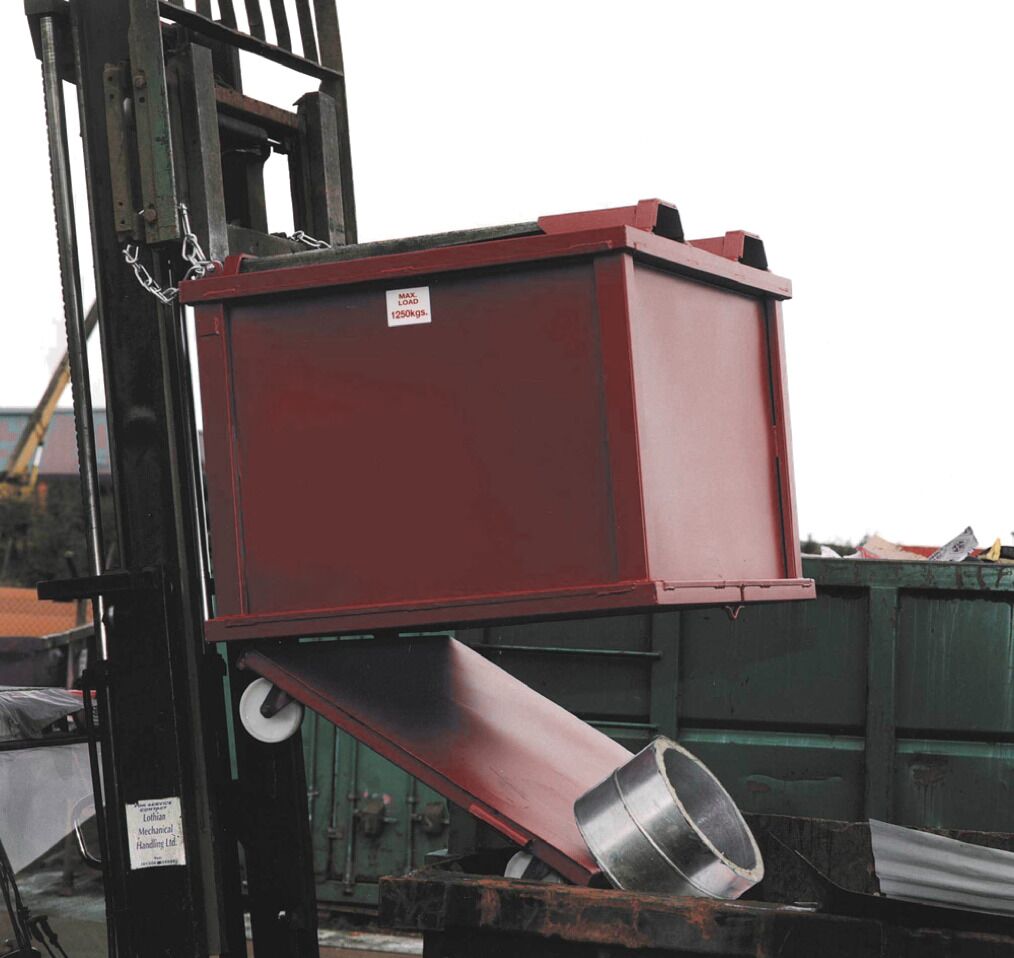 Manufactured from 2mm steel side plates and 3mm steel base plates, the fully automatic dumping boxes offer a robust and practical waste handling solution and a great alternative to the conventional forklift tipping skip.