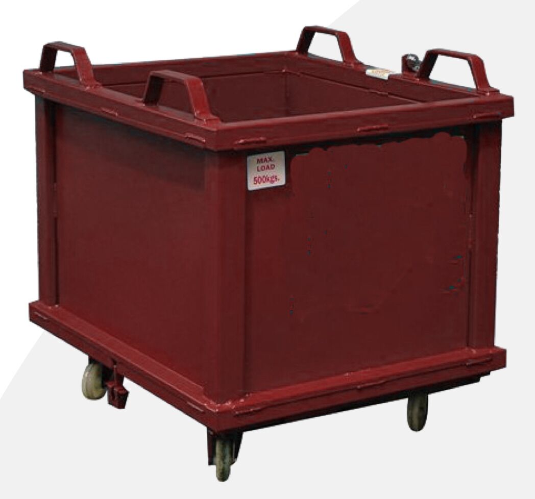 Our Automatic Base Emptying Stillage designed for collecting, moving and safely dumping factory waste whilst utilising your forklift truck.