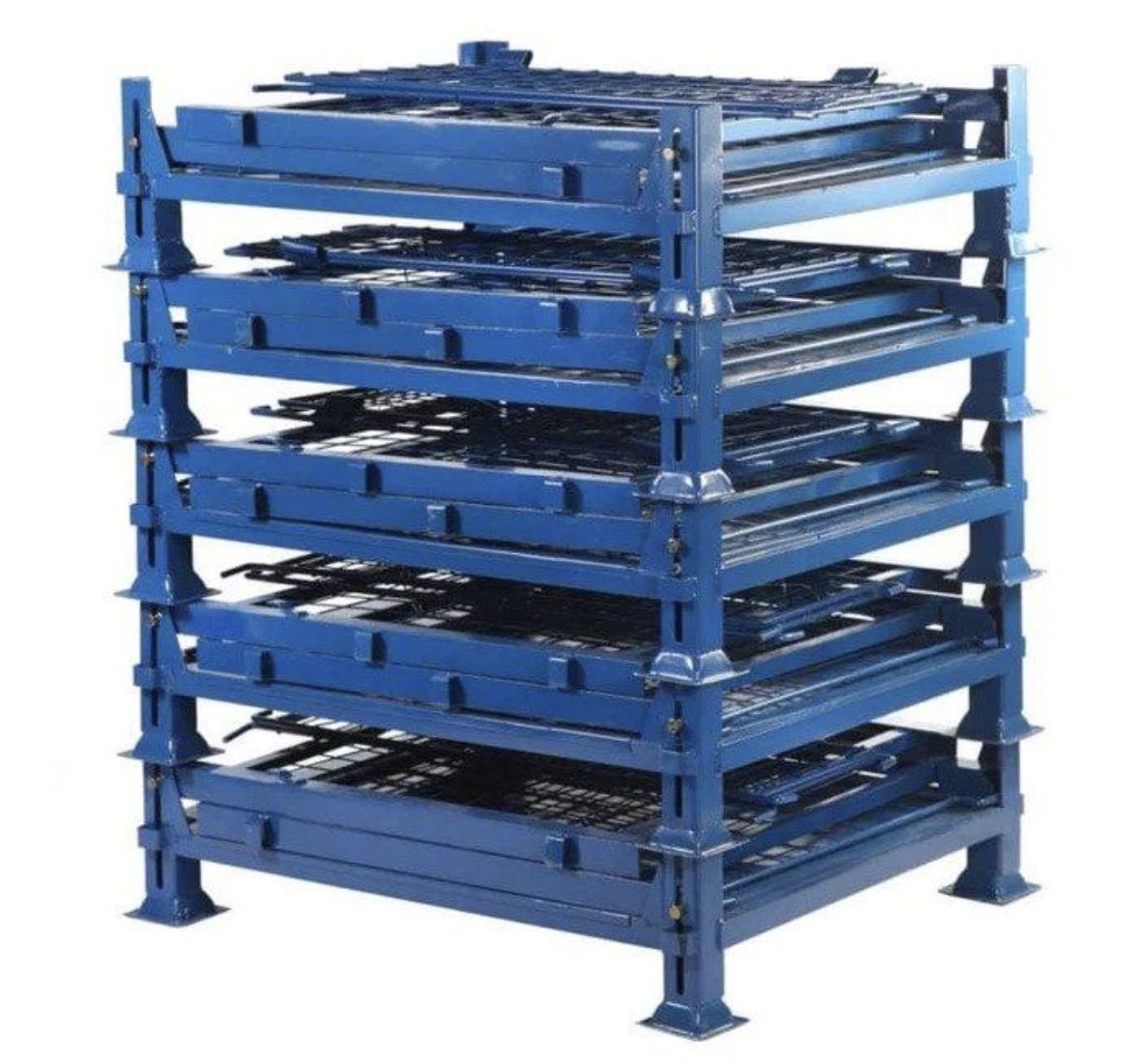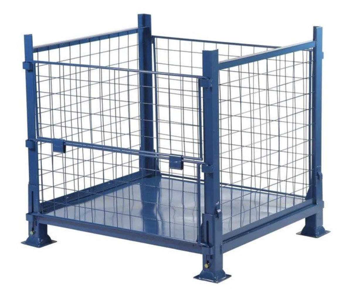 The pallet cage has a removable half drop down gate on the one side and a fully removable gate on the opposite side. Ideal for warehouse use, the pallet stillage cage is fully collapsible and can be conveniently stacked for easy storage
