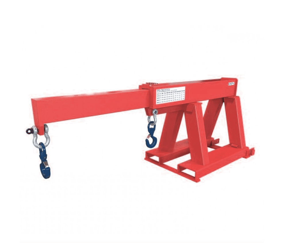 The lifting capacity of the forklift jib is based on the forklift trucks capacity, therefore ensuring the lifting jib can be operated safely within the lifting limits of the forklift truck